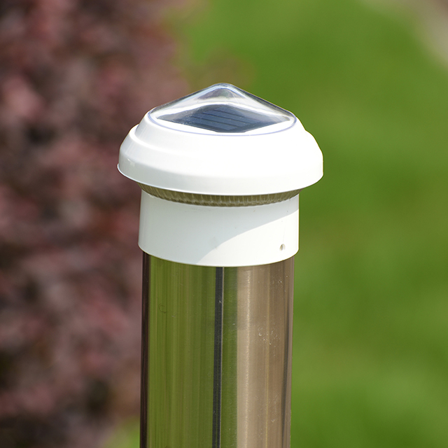 2211-CP1 WH Plastična karičana ograda sa kapom za solarne stupove je učinkovit i ekološki proizvod za rasvjetu dizajniran za 2,5-inčne lančane stupove za ogradu, pogodan za potrebe dekorativne i sigurnosne rasvjete u vanjskim prostorima. Veličine je 85x85x70 mm i izrađen je od visokokvalitetnog plastičnog materijala koji je izdržljiv i može izdržati teške vanjske uvjete poput vjetra, kiše i UV zraka. Svjetlo za stup dizajnirano je tako da savršeno pristaje uz standardne stupove ograde od 2,5 inča. Lako se i brzo postavlja bez potrebe za dodatnim alatima ili kompliciranim radnjama i može brzo dodati jak izvor svjetla u vaše dvorište, vrt, prilaz ili ogradu.